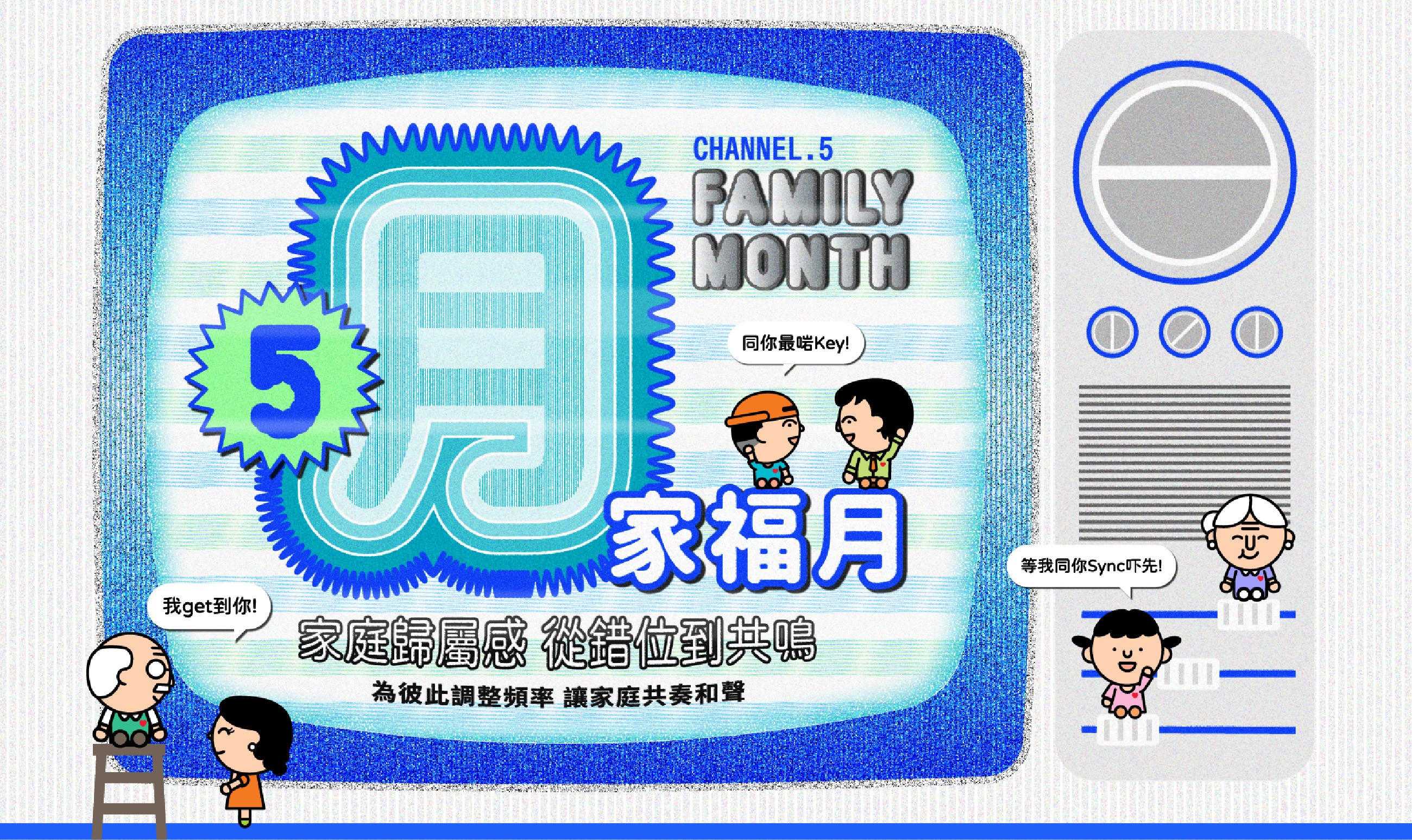 每年5月為「家福月」,希望藉此提升大家對家庭幸福及家庭價值的重視。今年將以「家庭歸屬感‧從錯位到共鳴」為主題,喻意一家人生活在同一屋簷下,每位家庭成員都有自己的溝通頻率,有時在交流上,會因為未能互相理解而出現期望落差,削弱情感連結,產生孤獨感,漸漸令家庭功能失效。在頻率的錯位之間,學會為對方以理解來調整,在家庭中找到共鳴,讓家成為最幸福的避風港。