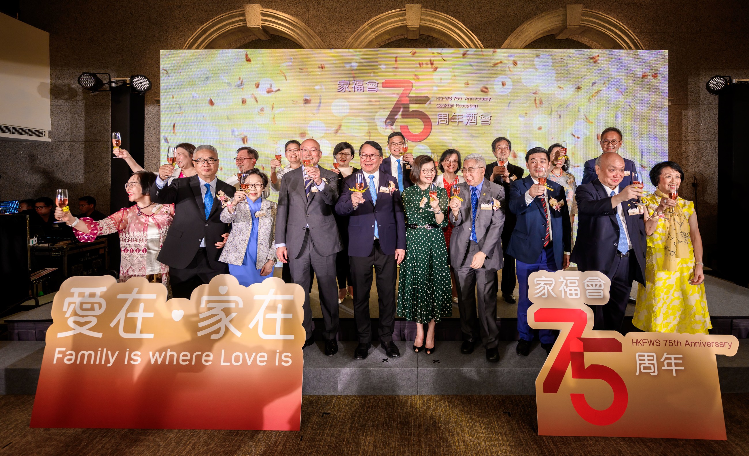 75 周年酒會 - 本會十分榮幸邀得政務司司長陳國基先生, GBS, IDSM, JP、中聯辦(社會工作部)處長陳子明先生等一同主持酒會慶祝儀式,同場有逾 200 名政商界、資助機構、企業伙伴及機構代表現身支持,一同見證家福會 75 周年這重要的里程碑。