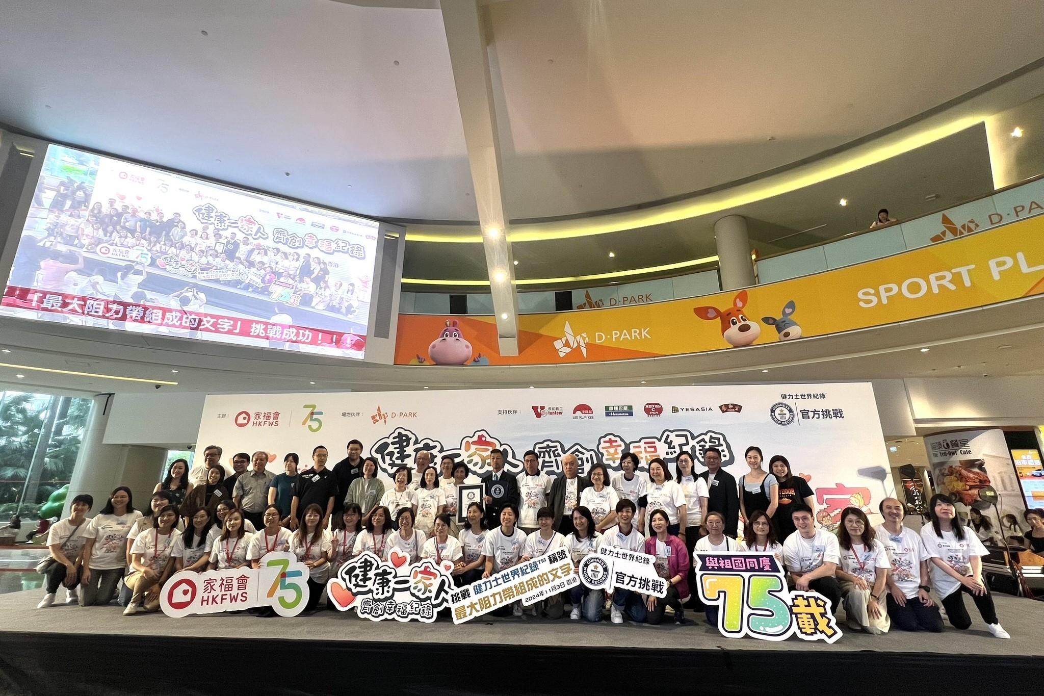 健康一家人 - 齊創幸福紀錄 - 活動邀請到社會福利署署長李佩詩女士, JP(時任)及立法會議員狄志遠博士, SBS, JP 擔任主禮嘉賓,一眾家庭以超過 1,000 條阻力帶拼砌出「家」字,成功以「最大阻力帶組成的文字」獲得健力士世界紀錄™ 榮譽,藉此向社會推廣關注「家庭健康」。