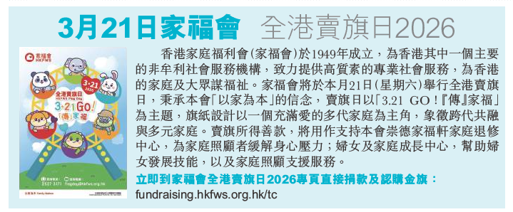 3月21日家福會 全港賣旗日2026 | 企業熱話