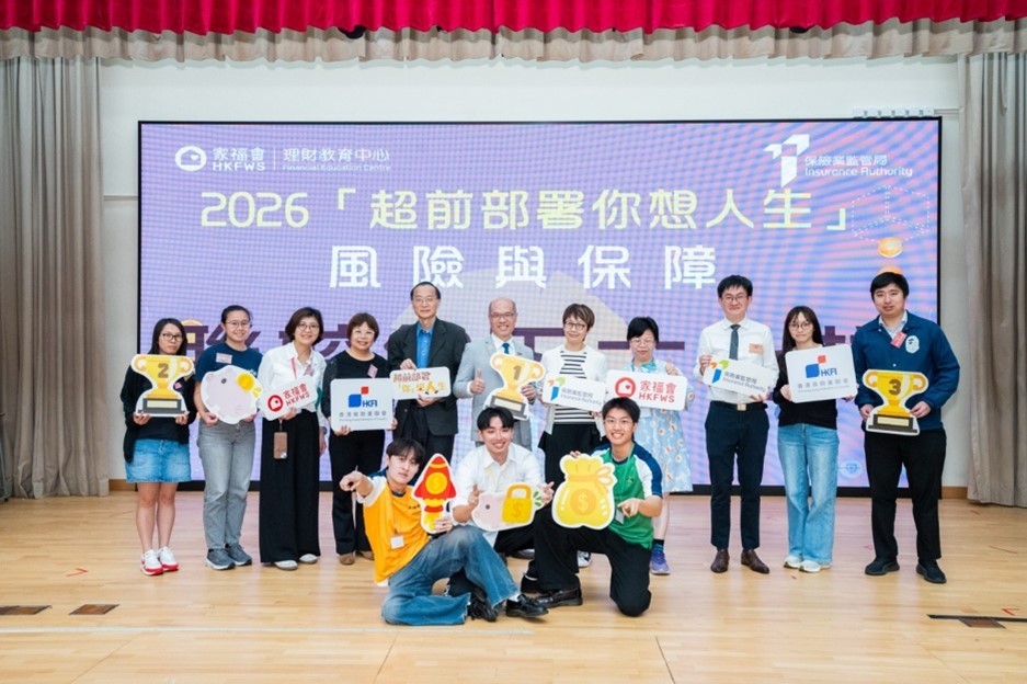 (2026-04-16)為了向年輕一輩灌輸理財知識、讓他們認識人生風險及保障概念,香港家庭福利會(家福會)理財教育中心與保險業監管局(保監局)再度合作,舉辦「2026『超前部署你想人生』風險與保障」活動,整個活動涵蓋今年二月期間舉行的全港學界「網上自助問答比賽」及3月27日舉辦的「聯校線下大比拼暨頒獎禮」校園活動。活動反應熱烈,合共有逾2,200名高中學生參加。全港學界「網上自助問答比賽」獲 58 間中學響應,一共 2,026 名中四至中六學生參與。參加者透過回答各情境式的選擇題及開放式題目,加深對人生風險管理、一般保障概念及保險實際操作的理解。賽後問卷顯示,超過七成學生認同問答比賽有助提升自身理財及管理風險知識,並表示會為未來的保障而改善理財行為。比賽後學校均會獲發「正確答案資訊包」及相關教學資源,以便老師安排課堂檢討與延伸活動。